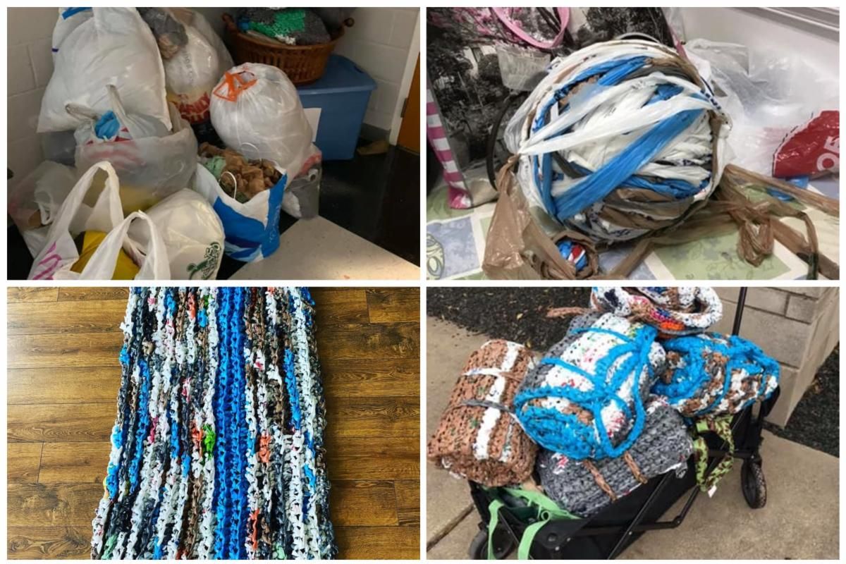 Over the past few years, you donated more than 100,000 plastic bags which were turned into 250 beds for unhoused people in Charlotte.  The steps between bag and bed are (1) cutting the bags into plastic yarn (Plarn) and (2) crocheting the Plarn into mats.